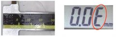 數(shù)顯卡尺 更換電池后,顯示屏可能會出現(xiàn)任意數(shù)值(如圖1),如不進行原點設(shè)置而直接使用的話,會出現(xiàn)圖2中末位E的報錯現(xiàn)象。 ORIGIN設(shè)定方法: 可以參考上圖右側(cè)的「更換電池閉合量…